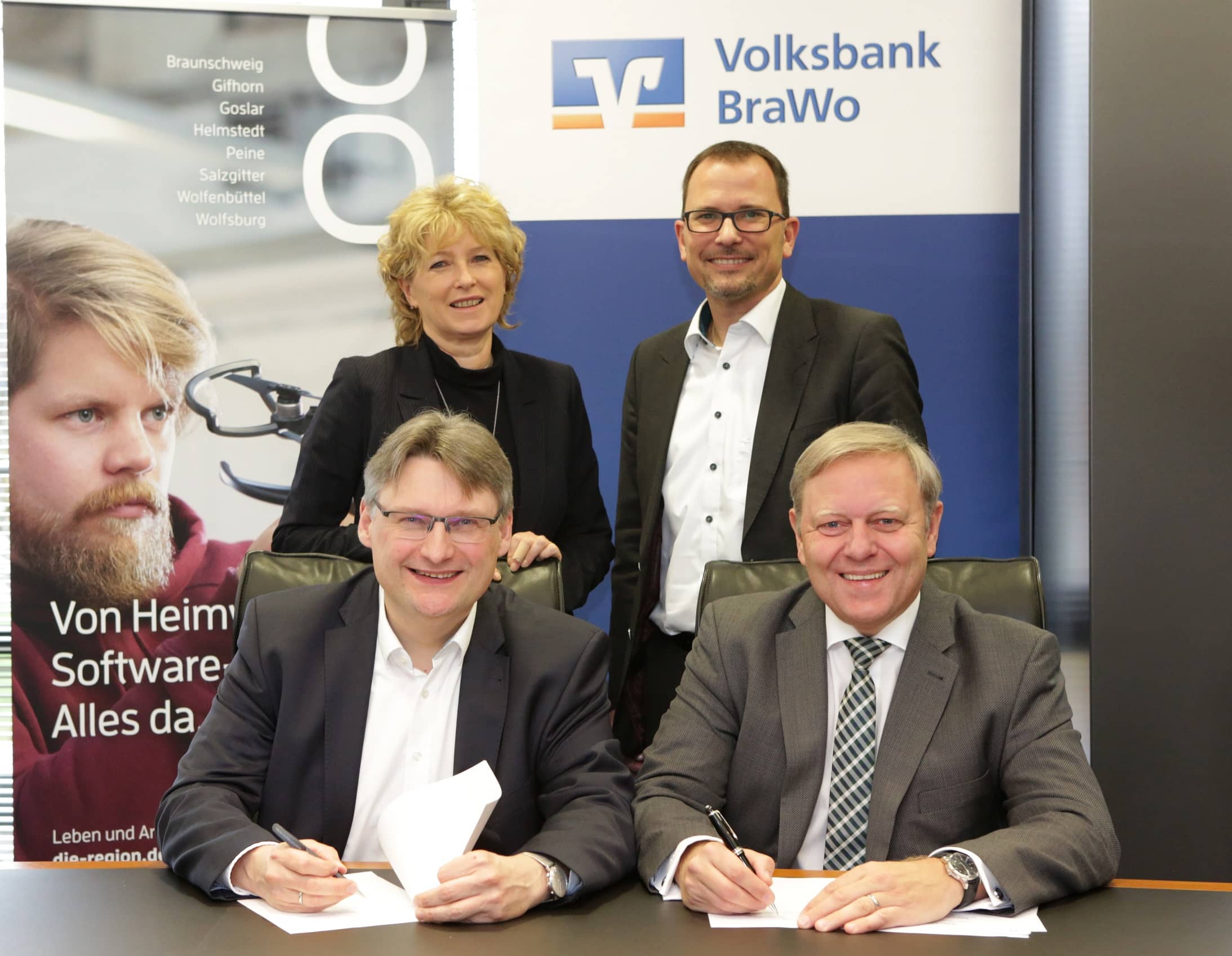 SDie Region Braunschweig-Wolfsburg nach außen hin als das zu präsentieren, was sie ist: ein attraktiver Standort zum Leben und Arbeiten. Das hat sich die Allianz für die Region GmbH auf die Fahne geschrieben. Um dieses Ziel realisieren zu können, steigt die Volksbank BraWo als Sponsor mit einem sechsstelligen Betrag ein. „Als regional verwurzeltes Unternehmen übernehmen wir immer mehr Verantwortung, unsere Region sowohl wirtschaftlich, als auch kulturell zu fördern. Die Stärken unserer Region werden von außen noch nicht so wahrgenommen, wie wir es alle gerne hätten. Das wollen wir jetzt gemeinsam verbessern“, betonte Jürgen Brinkmann, der sich auch als Mitglied des Aufsichtsrats der Allianz für die Region engagiert, während der Vertragsunterzeichnung am 7. Januar.