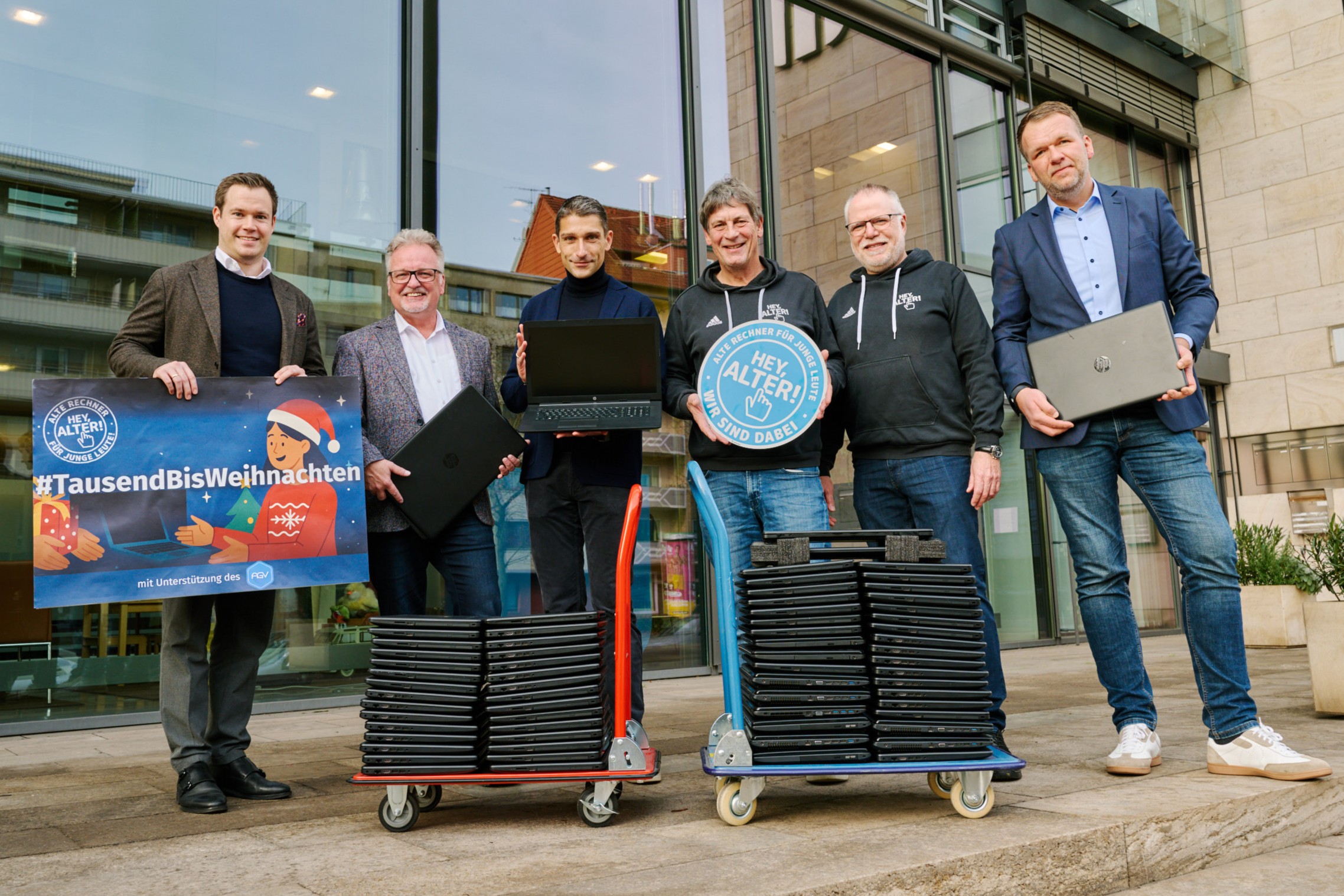Unsere Sammelaktion endet – die Unterstützung aber nicht: Auch 2026 sorgt HEY, ALTER! dafür, dass ausrangierte Rechner sicher gelöscht, professionell aufbereitet und zuverlässig an junge Menschen weitergegeben werden. Und wer weiß: Vielleicht knacken wir die ursprünglich anvisierte 1.000er-Marke schon bis zu den Zeugnisferien Anfang Februar.