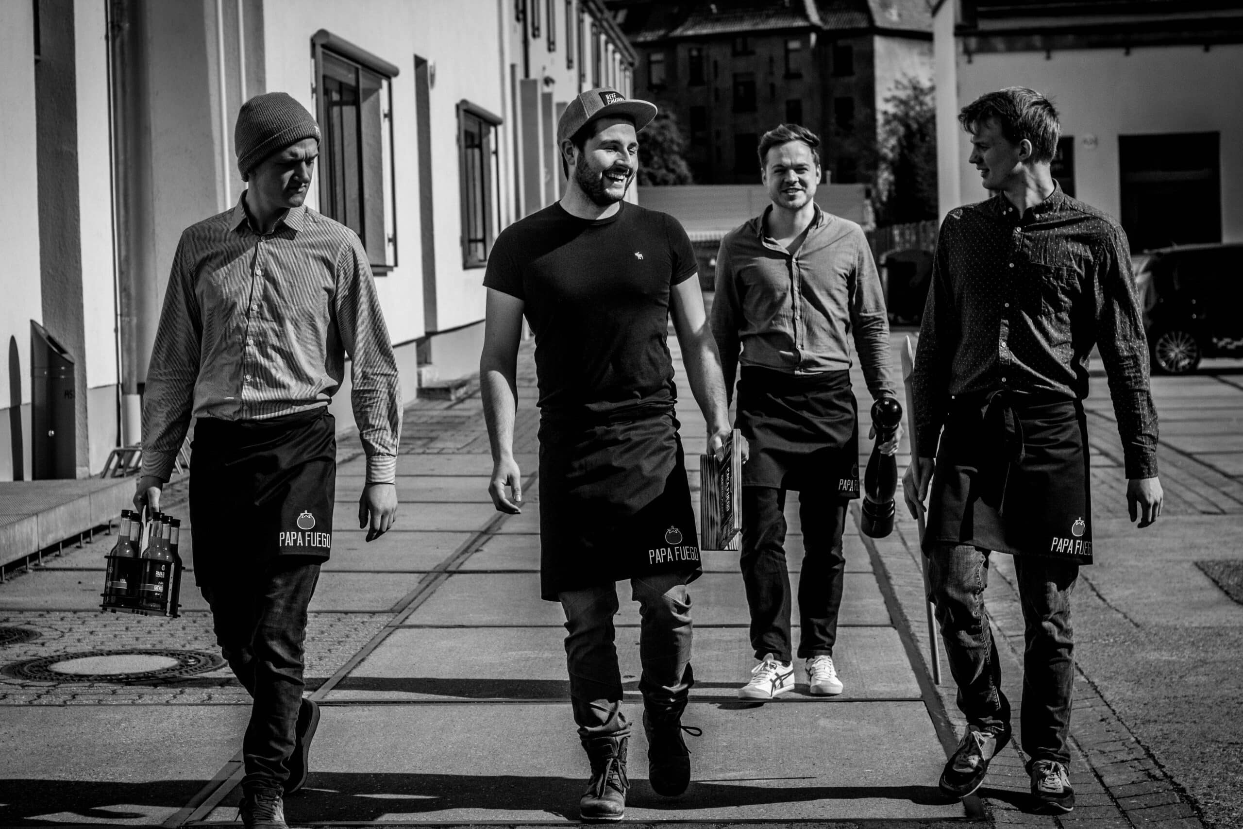Oliver Kern, Philipp Grimmel, Max Brandt und Jasper Brünnette sind die Gründer von Papa Fuego. Alle vier Studenten des Wirtschaftsingeneurwesens Fachrichtung Maschinenbau. Monatelang haben die vier zwischen 24 und 30 Jahre alten Gründer Rezepturen getestet, verschiedene Flaschen bestellt, erste Chargen abgefüllt, Etiketten designt, Freunde und Bekannte mit Probierpaketen beschenkt. Entscheidende Fragen mussten geklärt werden: Korn oder Wodka? Welche Gewürze? Mit Zucker oder ohne? Natürlich oder mit Geschmacksverstärker? Wie scharf? Wie hochprozentig? Bis dann im Sommer 2017 die ersten Flaschen in den Handel kamen. Papa Fuego Mexikaner ist nun eine vegane, glutenfreie Spirituose, die ausschließlich aus natürlichen Zutaten, frei von Konservierungs- und Farbstoffen hergestellt wird.